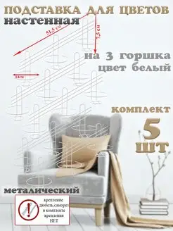 Настенная подставка цветов в комнату и на балкон 3 кашпо 5шт