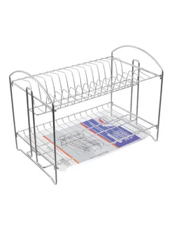 Полка сушилка для посуды настольная двухъярусная с поддоном