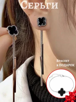 Серьги пусеты клевер висячие