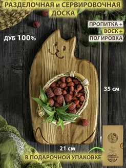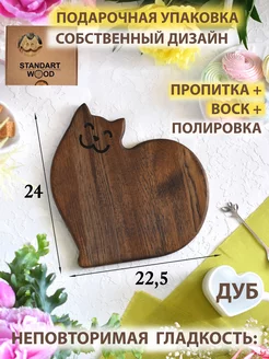 Доска разделочная дубовая Кот с мордочкой и хвостом