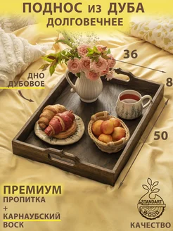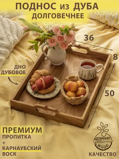 Поднос деревянный прямоугольный из дуба большой с ручками
