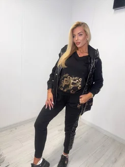 Костюм спорт-шик тройка со стразами Турция
