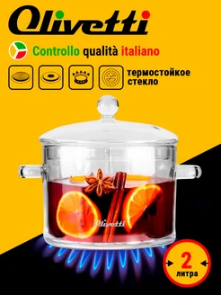 Кастрюля стеклянная прозрачная с крышкой 2 литра