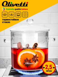 Кастрюля стеклянная прозрачная с крышкой 2,5 литра
