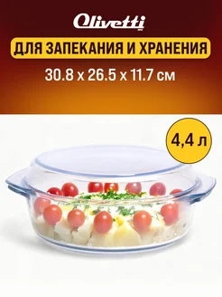 Форма для запекания в духовке стеклянная, 4.4 л с крышкой