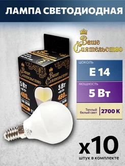 (10 шт.) - Лампа светодиодная Е14, 5W, 2700K