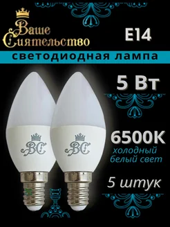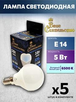 (5 шт.) - Лампа светодиодная Е14, 5W, 6500K