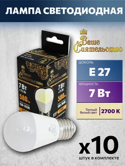 (10 шт.) - Лампа светодиодная Е27, 7W, 2700K