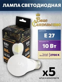 (5 шт.) - Лампа светодиодная Е27, 10W, 2700K