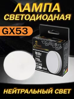 Лампочка светодиодная GX53 10Вт 4000К LED белый свет, 1шт