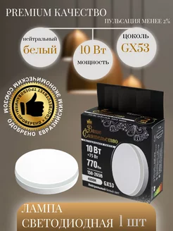 Светодиодная лампочка потолочная GX53 10 Bт таблетка-1шт