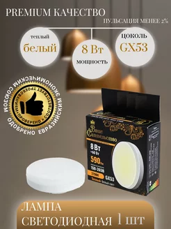 Светодиодная лампочка потолочная GX53 8 Bт таблетка - 1шт