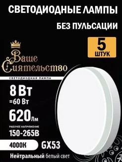 Лампочки светодиодные GX53 8 Вт 4000К 5 шт