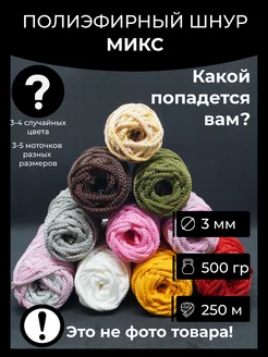 Набор Полиэфирных шнуров 3 мм 3-4 цвета 500 грамм