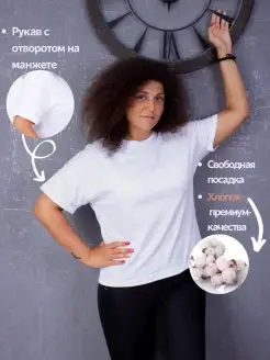 Базовая женская футболка оверсайз белого цвета из хлопка пря…
