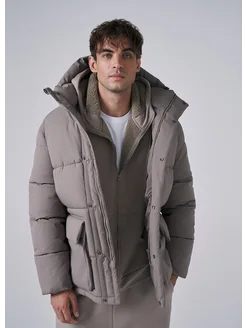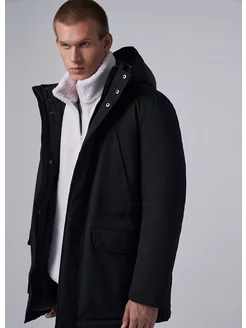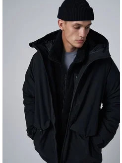 Утепленная куртка парка на молнии с капюшоном
