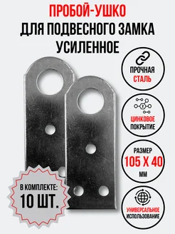 Проушина усиленная для замка прямая 105х40х3 мм. 10 шт