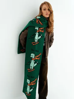 Шарф двусторонний длинный вязаный с принтом "Ski-Rex"