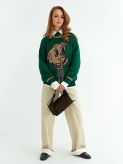 Свитер оверсайз вязаный шерстяной с принтом "Матисс"