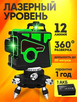 Лазерный уровень 3D (12 линий, зеленый луч) 1 АКБ