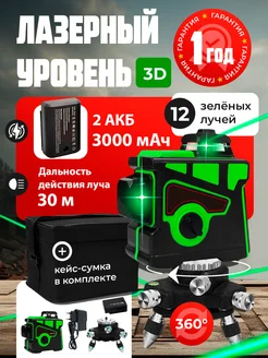 Лазерный уровень 3D 2 АКБ (12 линий, зеленый луч)