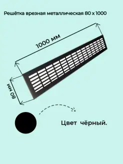 Решетка врезная металлическая 80x1000мм черная, матовая