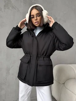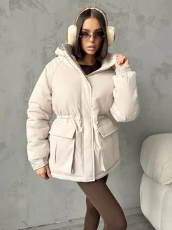 Короткая куртка зимняя с капюшоном оверсайз