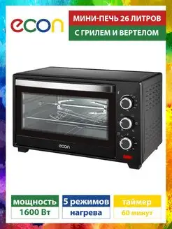 Электропечь 26 литров, 1600Вт, гриль, вертел