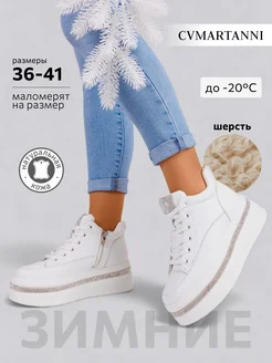 Зимние кроссовки на платформе утепленные с мехом стразы