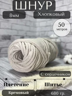 Хлопковый шнур 8мм с сердечником 50 м для вязания и шитья
