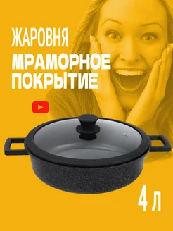 Жаровня с крышкой 4 л антипригарная большая глубокая
