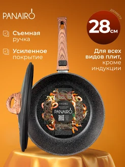 Сковорода 28 см большая с крышкой и съемной ручкой Панейро