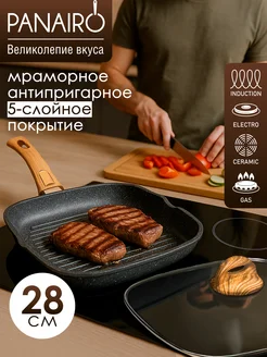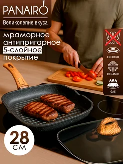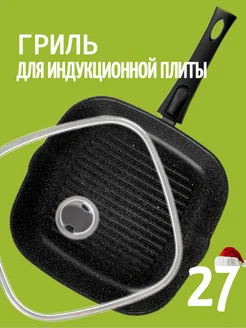 Сковорода гриль для индукционной плиты с крышкой 28 см