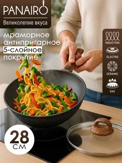 Сковорода ВОК для индукционной плиты с крышкой 28 см