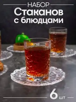 Блюдца под армуды для чая, стеклянные на 6 персон