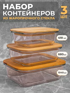Набор из 3 стеклянных контейнеров для хранения и запекания
