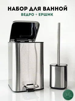 Мусорное ведро с педалью и ершик для унитаза из металла
