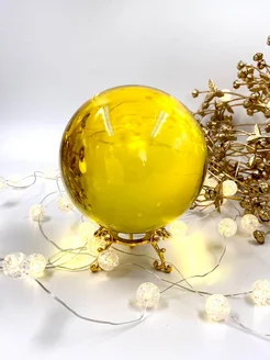Стеклянный шар большой желтый 10 см + ПОДСТАВКА