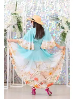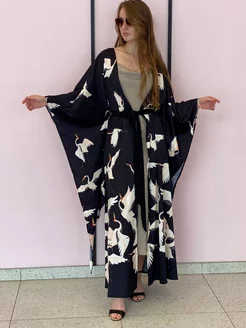 Платье длинное кимоно на запах шелковое праздничное