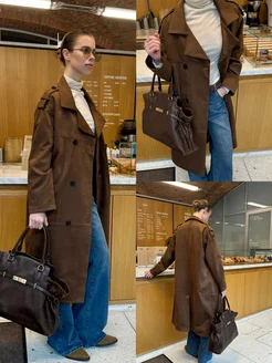 Тренч оверсайз замшевый плащ длинный