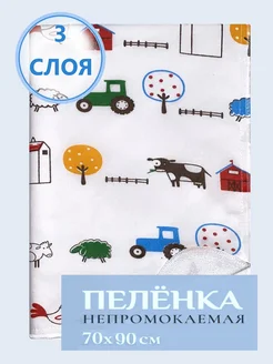 Непромокаемая многоразовая пелёнка ситец 70*90 Синий Трактор