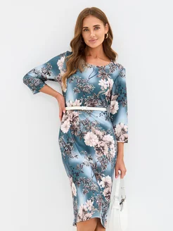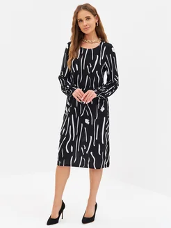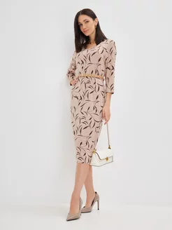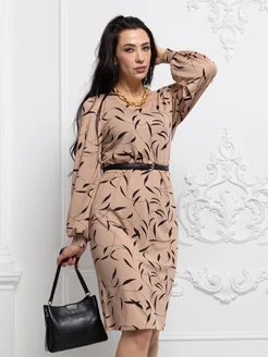 Платье женское офисное повседневное осень миди с рукавом 3 4