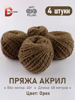Пряжа для вязания спицами и крючком Акрил Орех 40г. 4 мотка