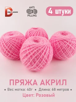 Пряжа для вязания спицами Акрил Розовый 40г. 4 мотка