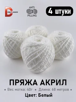 Пряжа для вязания спицами и крючком Акрил Белый 40г. 4 мотка