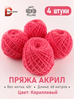 Пряжа для вязания спицами Акрил Коралловый 40г. 4 мотка