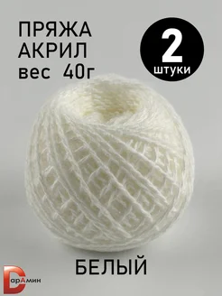 Пряжа для вязания спицами и крючком Акрил Белый 40г. 2 мотка