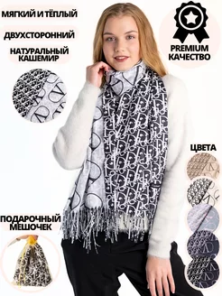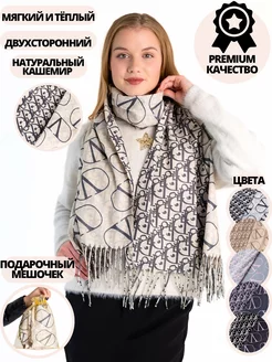 Палантин осенний двухсторонний кашемир с бахромой подарочный