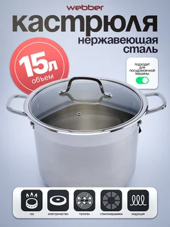 Кастрюля большая из нержавеющей стали с крышкой 15 литров