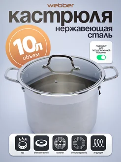 Кастрюля высокая из нержавеющей стали с крышкой 10 литров